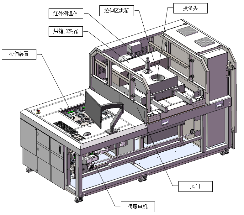 溫度控制:采用多溫區(qū)獨(dú)立控溫(拉伸區(qū)、預(yù)熱區(qū)等),溫控精度可達(dá)±0.5℃,適應(yīng)材料玻璃化轉(zhuǎn)變溫度(Tg)附近的精確實(shí)驗(yàn)。